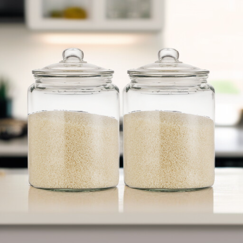 ขวดแก้วใส่ข้าวขนาดใหญ่ ความจุถึง 10 กิโลกรัม เหมาะสำหรับครอบครัวใหญ่หรือร้านอาหาร ใช้งานสะดวกและประหยัดพื้นที่จัดเก็บ.